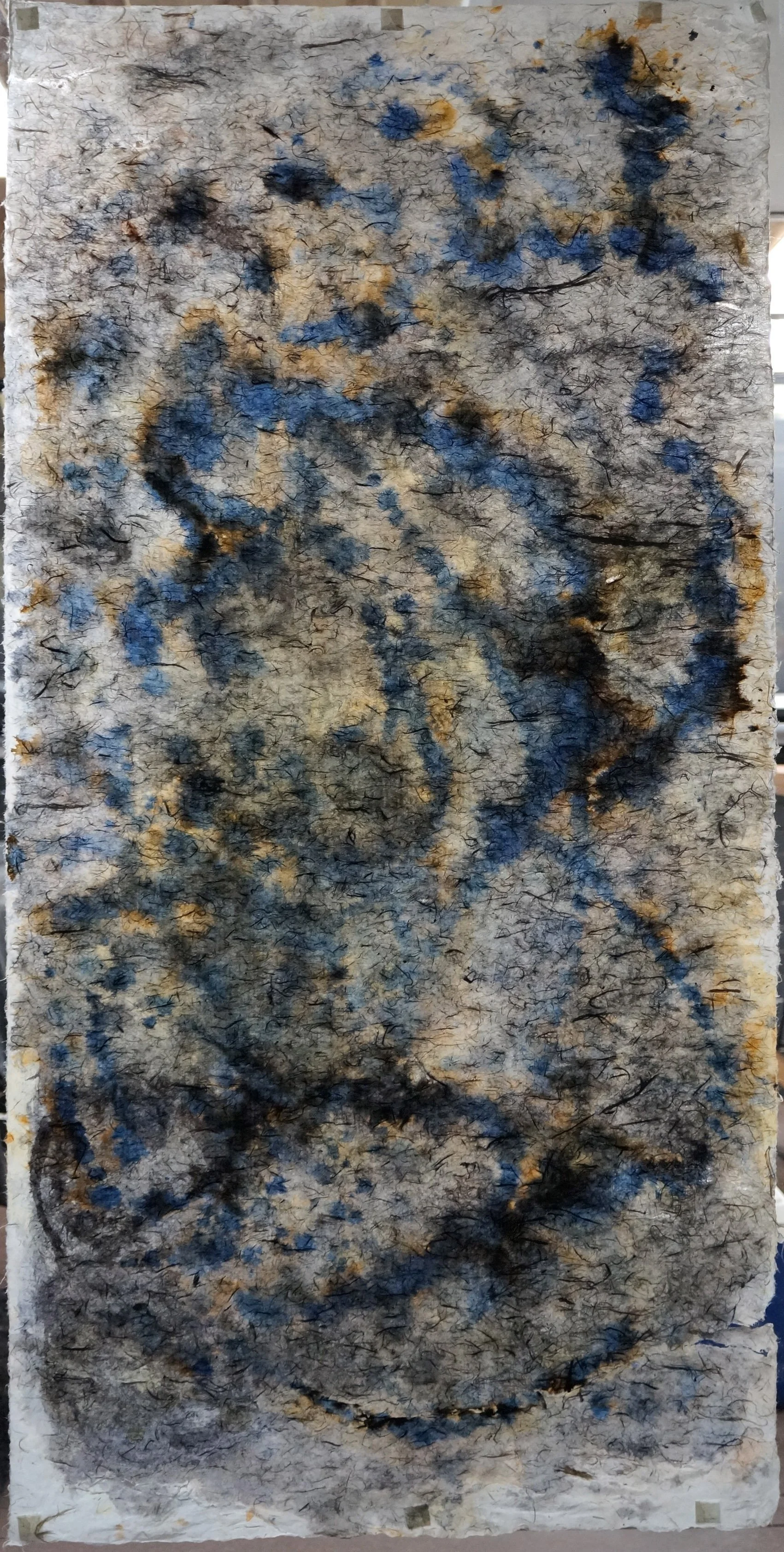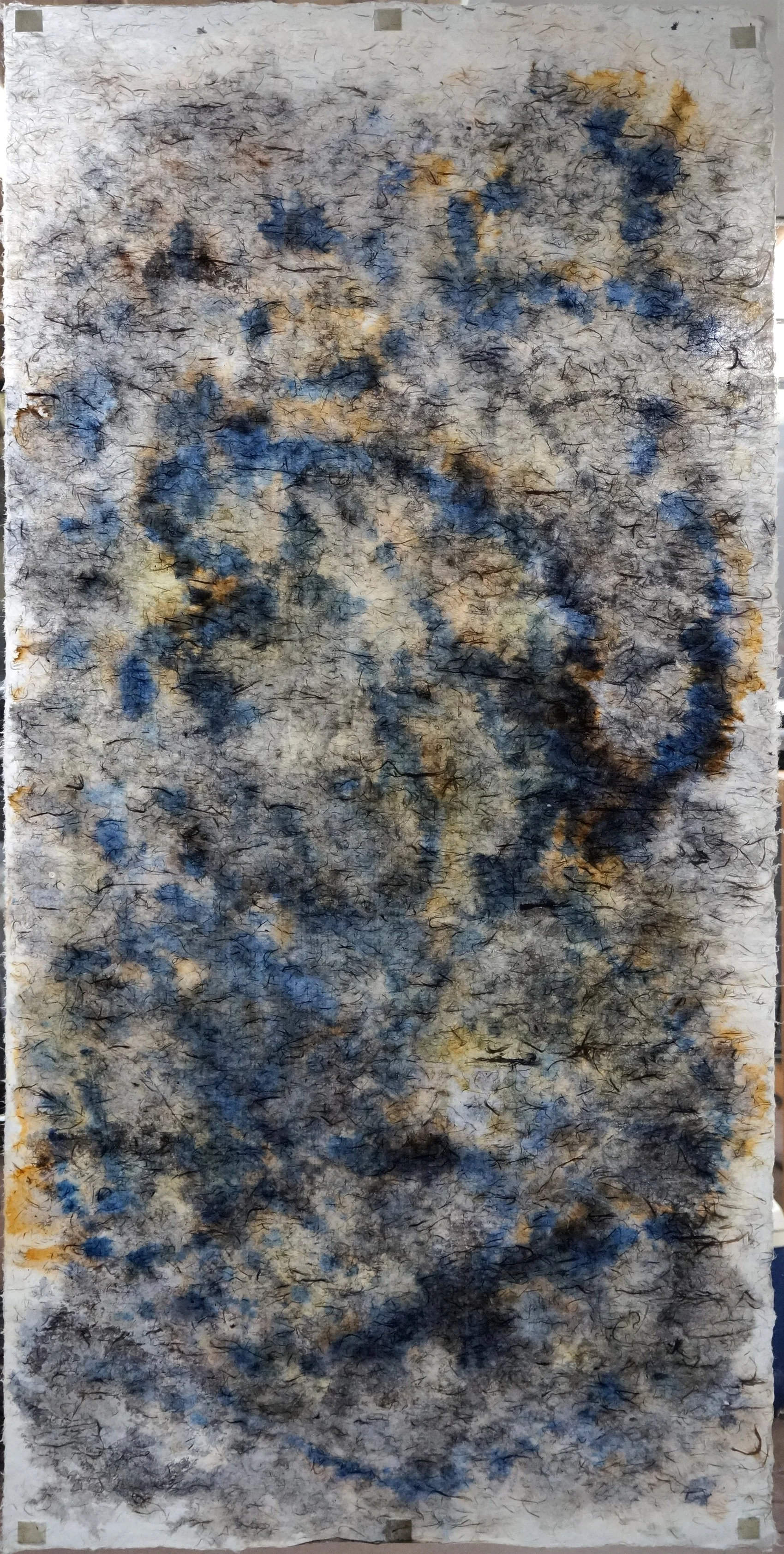 Visual Imagining (layer 2). April 25, 2025. Bleed through from Layer 1 on mulberry paper. 69cm x 136cm.